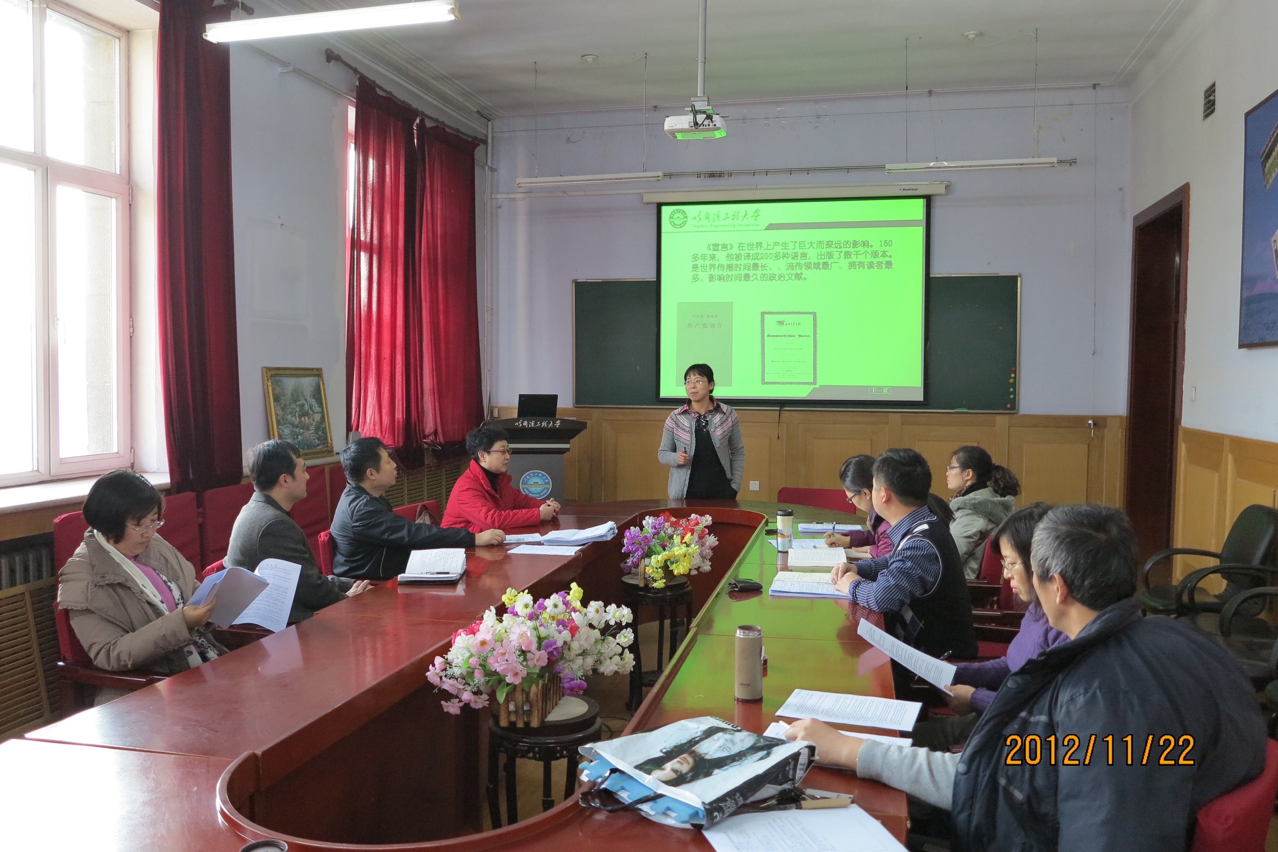 11月22日上午,马克思主义基本原理党支部组织教研室全体教师进行了“学习十八大报告,重读《共产党宣言》”活动。思政部领导陈坤、陈红以及工会主席杨志刚等同志参加了学习。