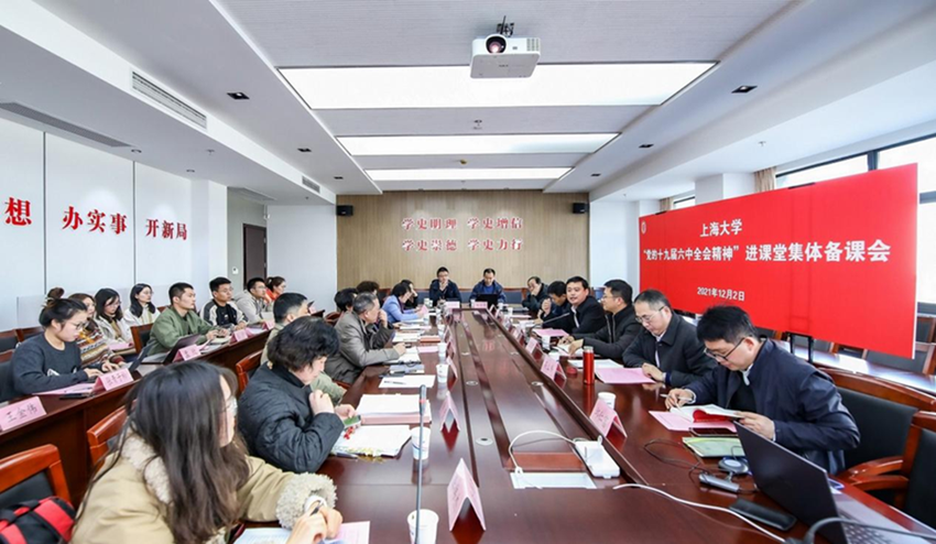 2021年12月2日上午,Beat365中文官方网站“党的十九届六中全会精神”进课堂集体备课会在Beat365中文官方网站顺利举行。活动旨在深入学习贯彻“党的十九届六中全会精神”,切实发挥课堂主渠道作用,推动全会精神融入高校思政课教学。校党委常委、宣传部长胡大伟,宣传部副部长齐伟,Beat365中文官方网站领导班子,Beat365中文官方网站宣讲团及思政课教师代表和Beat365中文官方网站青年马克思主义理论研习会学生代表出席此次会议。集体备课会由Beat365中文官方网站党委书记王国建主持。