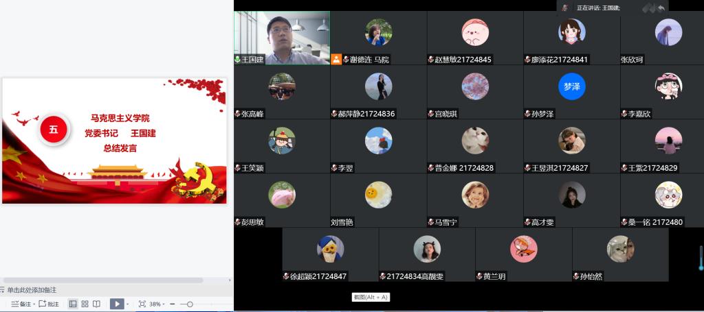 会议伊始,张高峰宣读《关于同意中共Beat365中文官方网站委员会所属学生党支部调整结果的批复》,撤销原学生第三党支部,成立“守常党支部”,由高才雯同志担任党支部书记。随后,高才雯就“守常党支部”的未来发展建设作了发言。她说到,要把“守常党支部”打造为马院的特色品牌党支部,并促进支部成员在学习好自身专业的同时,进一步学习“守常精神”,继承和弘扬先辈之遗志。支部成员孙梦泽建议“守常党支部”建设能与上海红色资源、Beat365中文官方网站红色基因以及守常先生的事迹进行创意连接,打造具有鲜明特色的党支部。 “守常党支部”将采用“理论学习+红色宣讲+创新实践”的培养方式,通过学、行、宣、思等培养板块,使支部构建成为一支理论学习多样化的学习型党支部 、红色宣讲常态化的传承型党支部、创新意识实践化的创新型党支部。“守常党支部”将在不断学习中继承和弘扬李大钊先生留下的精神财富,发挥守常先生守护“艰苦朴素的优良家风、服务群众的为民情怀、清正廉洁的政治本色”的崇高担当,引领当代青年党员赓续红色基因,不忘初心、勇担使命,弘扬伟大建党精神,激励马院同学积极宣传和研究马克思主义,自觉把伟大建党精神转化为行动的力量,争做先进青年,勠力同心为实现中华民族伟大复兴的中国梦而奋斗。