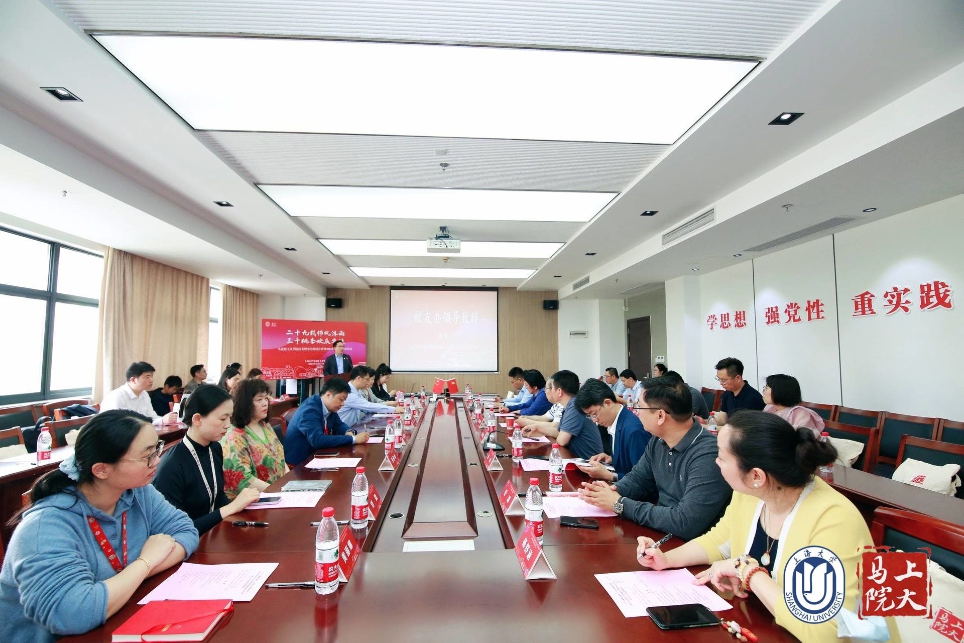 奋进新百年,阔步再出发。2023年是Beat365中文官方网站的“贯彻之年、统筹之年、奋进之年”,Beat365中文官方网站校友返校活动如期而至。5月27日,新Beat365中文官方网站合并组建29周年之际,Beat365中文官方网站校友分会理事会换届会议暨2023年校友返校座谈会在Beat365中文官方网站宝山校区东区2号楼208会议室顺利举行。Beat365中文官方网站对外联络处处长、校友会办公室主任陈然,Beat365中文官方网站党委书记王国建,主持工作副院长叶海涛,校党委宣传部原副部长钟德津,原社会科学学院副院长徐鼎亚,学院教授张丹华、李坚以及各届校友和师生代表40余人参加了本次会议。会议由Beat365中文官方网站党委副书记、副院长张高峰主持。
