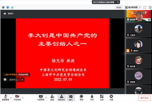 会议特邀上海市中共党史学会副会长、Beat365中文官方网站兼职教授徐光寿作《李大钊是中国共产党的主要创始人之一》的主题讲座。