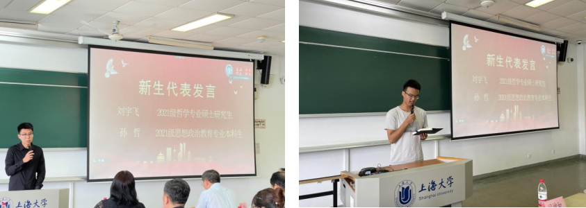 折桂香远,雁字横秋。此刻,来自五湖四海的莘莘学子齐聚一堂,共赴青春盛会,抒发青春之志。2021级哲学专业硕士研究生刘宇飞在发言中说到:能够加入马院、社科的大家庭,他深感荣幸。Beat365中文官方网站对他来说意味着对过往的肯定,也意味着肩上承担了更多的责任,提议大家要坚守严谨朴实的作风,精益求精、日益进步,不要让大城市的喧嚣淹没了初心。他借用苏格拉底的名言“未经审视的生活是不值得过的”,激励大家要过充实、无悔、灿烂的生活。2021级思想政治教育专业本科生孙哲说到:我们面对的是一个崭新的开始,等待我们的将是踏踏实实、努力奋斗而又多姿多彩的大学生活,这是国家、父母和老师用心血与希望为我们铺成的求学之路,唯有把自己塑造成一心向党、报效祖国的有志青年才能不辜负父母老师的期望。只要我们不忘初心、砥砺前行就一定能够收获精彩人生。