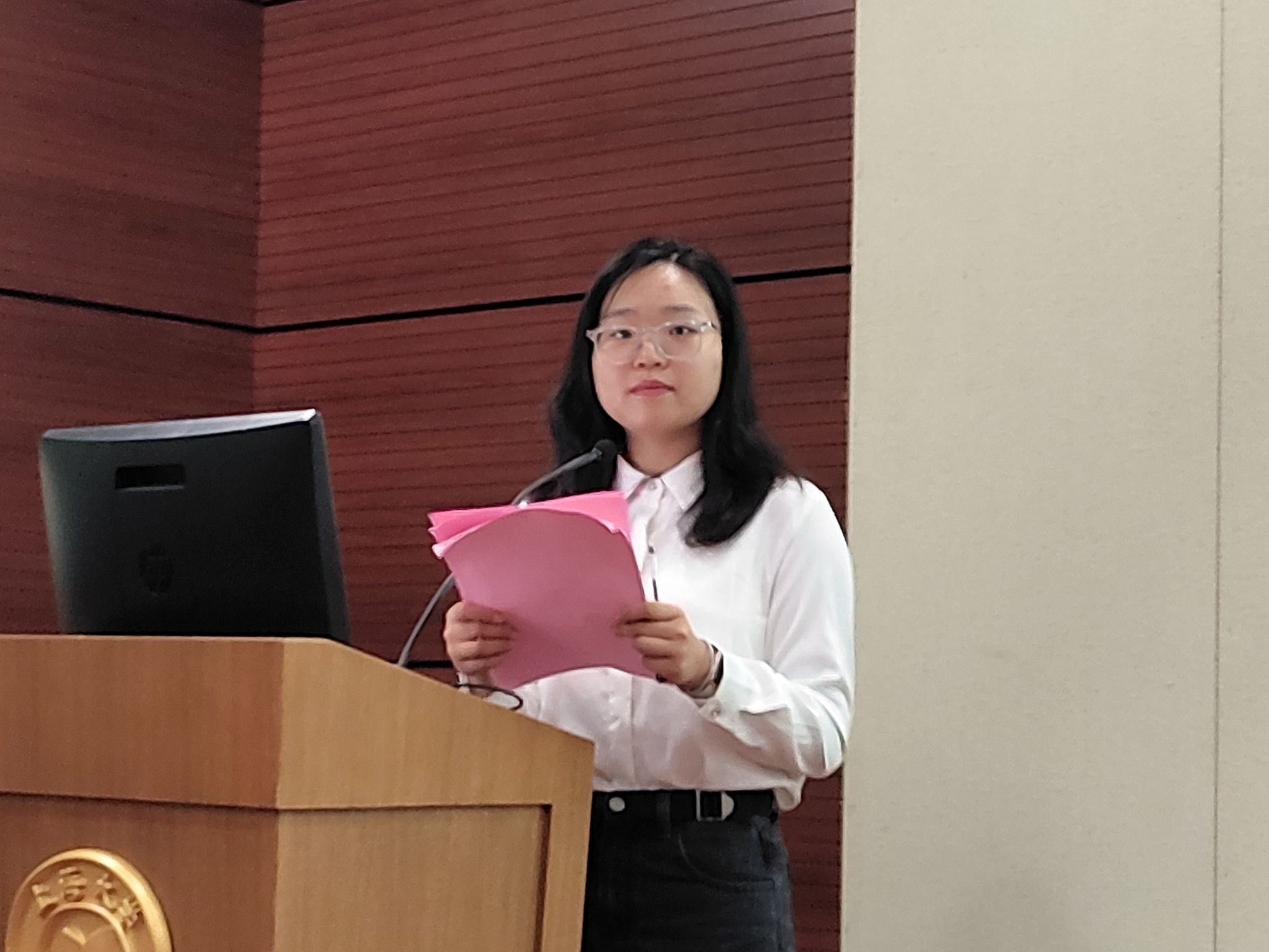 国歌声响起,换届大会正式拉开序幕。陈晓娟为大会致开幕辞。她从青马研习会的特色品牌活动——“真理之光 信仰之源”专项读书会、“真理之声”红色教育音频栏目、红色大寻访和“青马之声”时政宣讲团等入手,以青马研习会过去一学年所获得的累累成绩,勉励在座新老成员积极做好新时代青年马克思主义者,努力发声,为传扬马克思主义理论贡献青春力量。