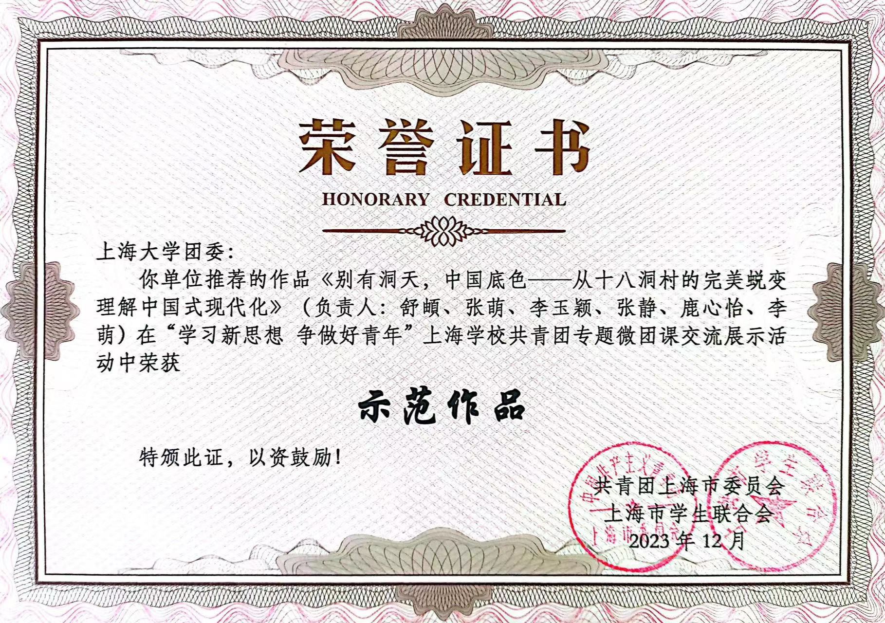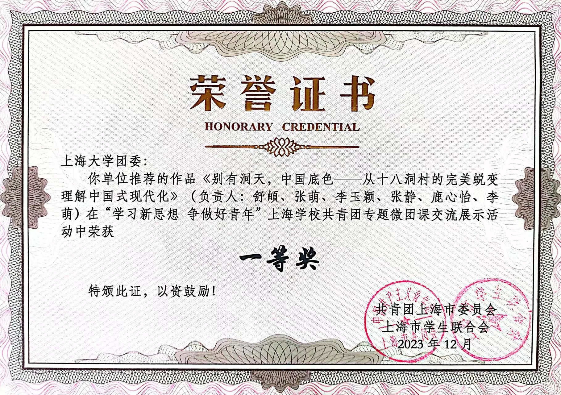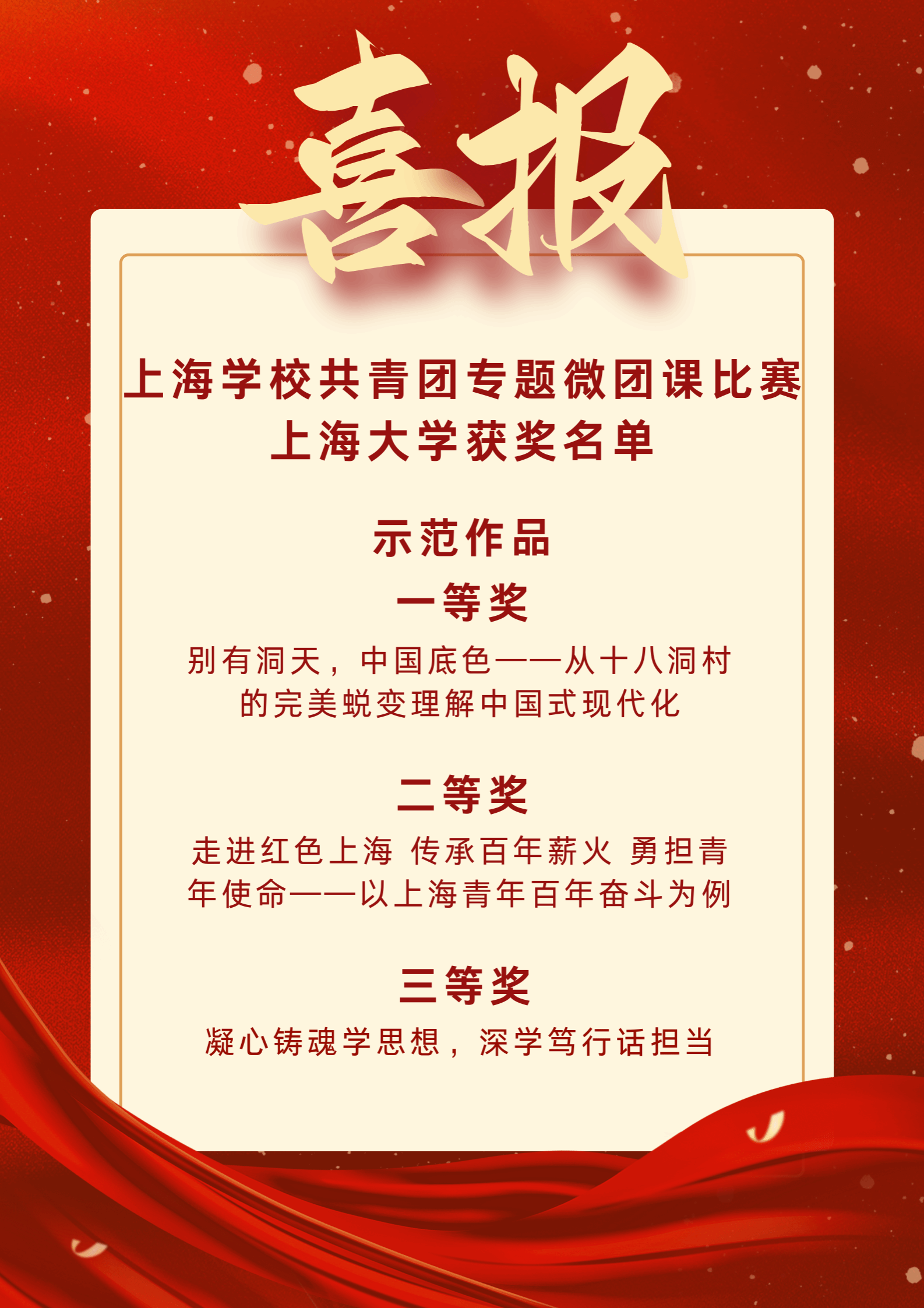 为全面学习贯彻习近平新时代中国特色社会主义思想和党的二十大精神,深入落实习近平总书记在同团中央新一届领导班子集体谈话时的重要讲话精神,加强对共青团员的政治锻造,加强对广大青年的政治引领,12月23日,由团市委、市学联共同开展的“学习新思想 争做好青年”上海学校共青团专题微团课交流展示活动在华东师范大学(普陀校区)举行。 Beat365官网青年学子在此次活动中斩获佳绩。由申小翠教授指导,舒頔、张萌等6名思政专业本科生组成的团队获市级一等奖;由李坚教授指导,罗逸雪、周孙卿等6名本、硕、博学生组成的团队获市级二等奖。一等奖作品获“示范作品”,得到团中央、团市委领导和专家现场观摩和点评指导。全市共10支青年师生团队或个人参与现场展示,从全市66家高校、高职和16家市属团组织属地高中的的200余件复赛作品中遴选产生。