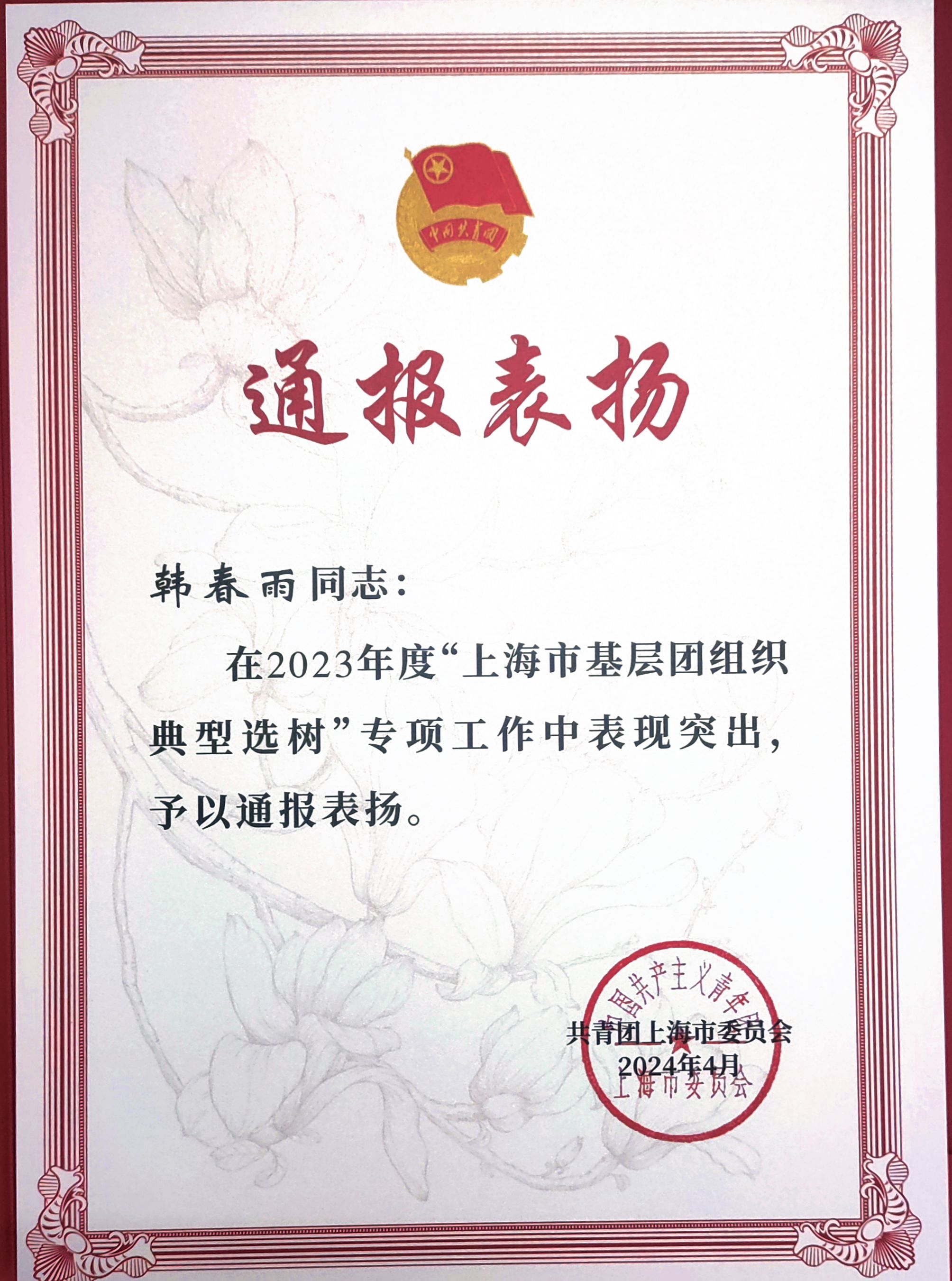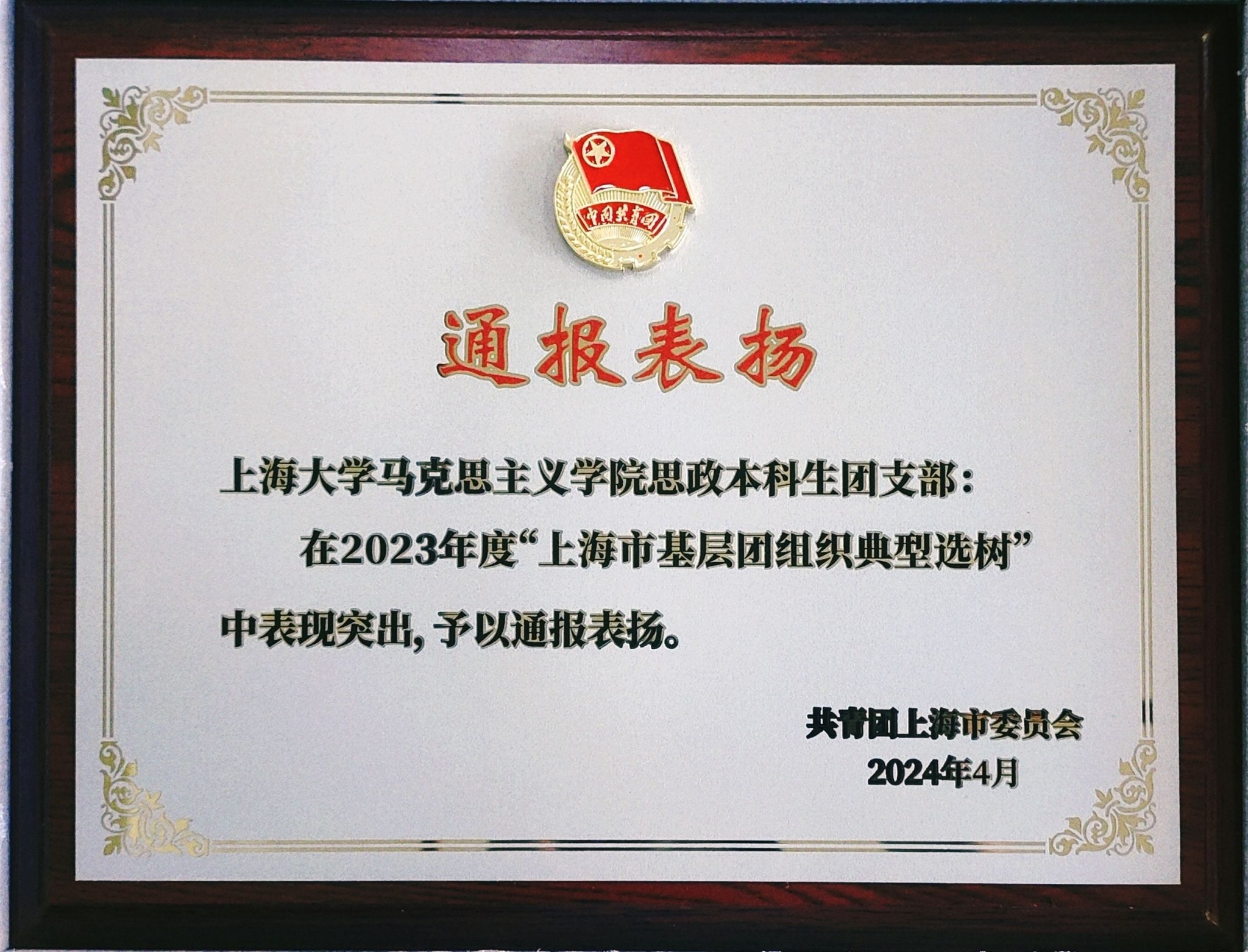 思政本科生团支部入选2023年度“上海市基层团组织典型选树“”通报表扬名单 2023年度上海市基层团组织典型选树专项工作个人