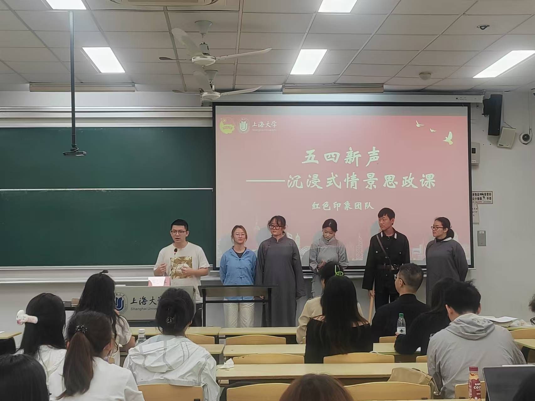 全程,班团骨干聚精会神,热烈互动,深受启发。 第四课:体验《沉浸式情景思政课——“五四新声”》