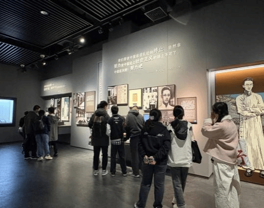 走进龙华烈士纪念馆,泛黄的家书、生锈的镣铐、模糊的老照片,每一件文物都在无声诉说。一组关于“龙华二十四烈士”殉难者纪念区的展板前,同学们久久驻足。展板上李汉俊的黑白照片中,他戴着圆框眼镜,目光如炬,照片旁镌刻着他在《民国日报》副刊《觉悟》上的宣言:“我们要使中国底混乱赶快终止,自然非努力使中国赶快上社会主义的路上不可了。中国底同胞!努力吧!”一位党员同学向驻足于此的同学们动情地讲述了李汉俊的事迹:1921年,正是这位31岁的青年,在上海法租界的家中点燃了马克思主义的火种——他的寓所成为“中共一大”的召开地。
