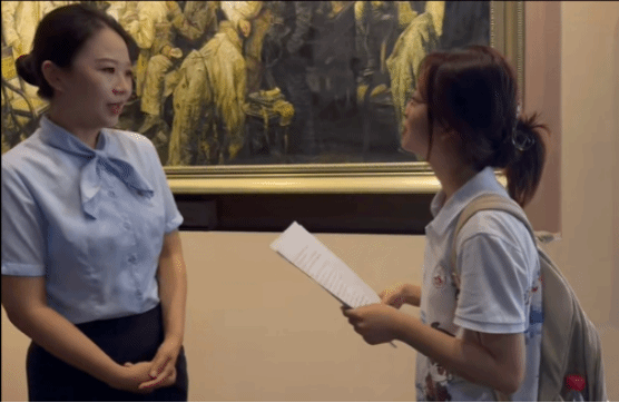 调研期间,实践团还围绕红色文化传承与区域协作主题,先后访谈了多位深耕红色一线的建设者和工作者,深入了解不同视角下的革命精神传承与新时代发展经验。在红花岗区老城街道纪念馆社区,党总支书记张仙介绍了红色基地的保护与社区红色文化建设的智慧;在《伟大转折》剧场,毛泽东饰演者王广胜老师交流了塑造革命领袖形象的创作历程,为大家详细解析“如何通过艺术表演还原历史真实,使观众更直观地感受遵义会议的重大历史意义”。访谈结束后,大家还受邀观看了沉浸式红色舞台剧目《伟大转折》,颇受震撼;在遵义会议纪念馆,资深讲解员张雯同志结合多年工作经验,向成员们讲述不同群体对红色文化的接受特点,以及如何通过精细化讲解服务,让参观者真正理解遵义会议精神的核心内涵。