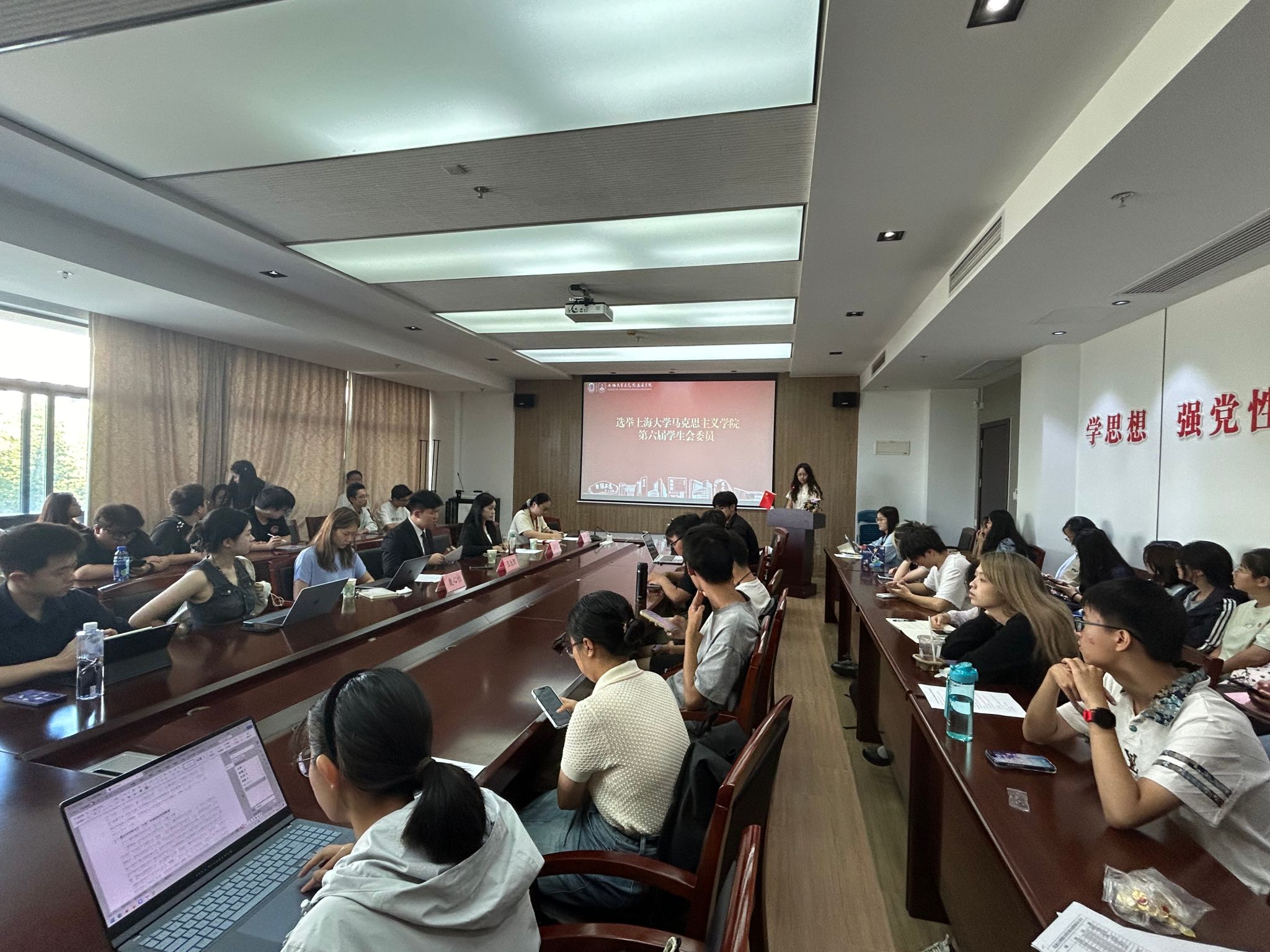 Beat365中文官方网站第五届学生会主席团成员鹿心怡在会上作上一届学生会工作报告。她表示过去一年来,学生会在学院党委领导和学院团委、校学生会的指导下,坚持以习近平新时代中国特色社会主义思想为指导,围绕思想引领、组织建设与服务同学等方面扎实推进工作,切实服务同学成长需求。同时指出当前工作中存在的章程有待完善、部门协同不足、反馈机制不够健全等问题,提出未来从内部建设、服务提质、资源整合与宣传创新等方面持续推进改革。