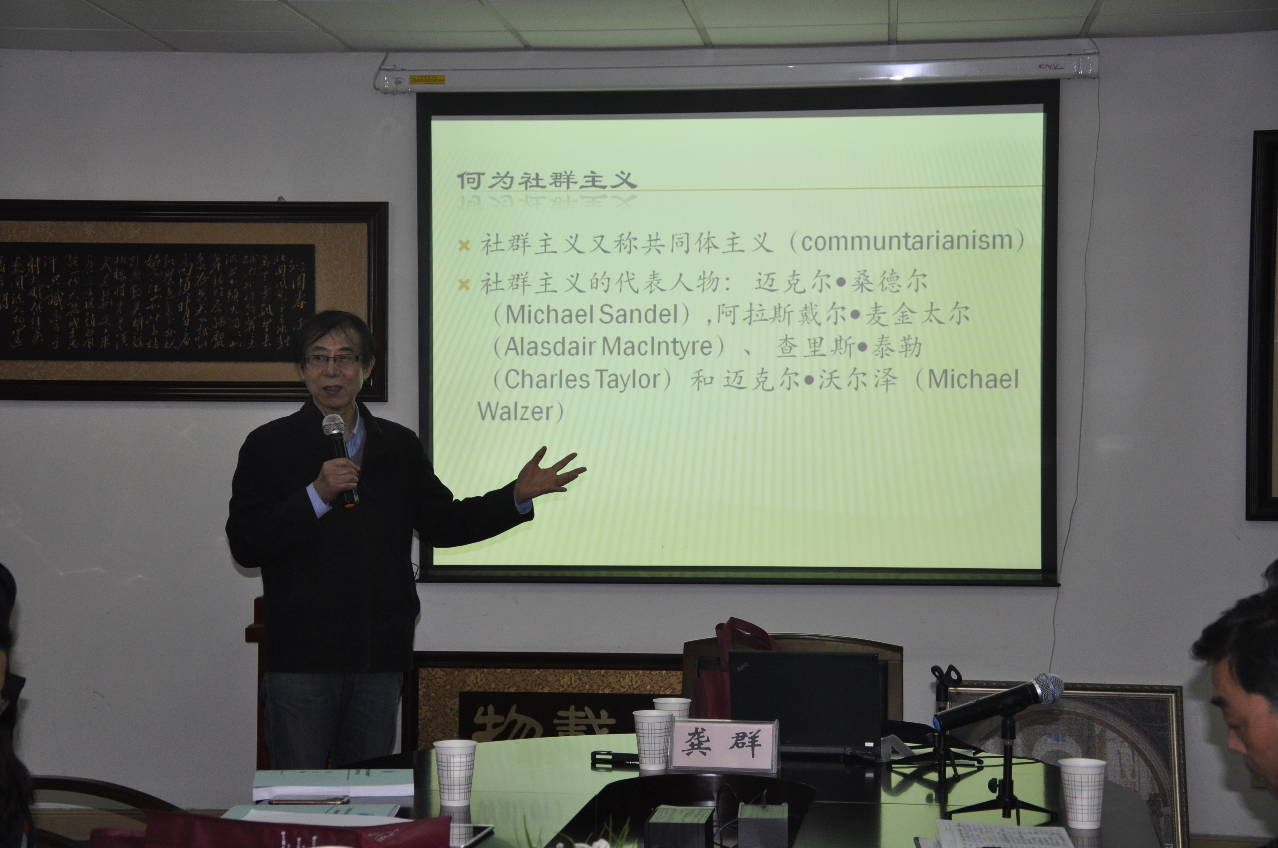 2015年12月11日晚上7:30,Beat365中文官方网站"泮池言学"系列暨社科论坛第一五一讲在校本部B401举行。本次论坛由中国人民大学伦理学研究基地执行主任龚群教授带来题为"社群主义的共同体观念"的学术讲座。论坛由吴德勤教授主持,Beat365中文官方网站欧阳光明、沈海燕、周丽昀、杨庆峰、刘友古、鲍建竹、张亚月、曹青春老师和部分硕士研究生参加了此次论坛。 龚群教授首先以何为社群主义引出了社群主义思想的四位代表人物,并就社群主义与自由主义、个人主义和利己主义的历史起源和发展进行了深刻的辨析。他指出每个人都不是一个独立的原子化的个人存在,而是从属于家庭、单位、国家,是共同体的一部分。 接着,龚群教授介绍了桑德尔的共同体观念,指出共同体的共性表现在情感上,拥有共同情感的人结合成一个共同体。共同体由参与者所共享的自我理解构成,参与者组成了共同体,共同体反过来塑造了个人的特性。然后,龚群教授介绍了麦金泰尔关于现代社会自我与共同体的观念。强调现代社会已经不是其成员的共同体,现代社会的自我已经丧失了由社会身份约定人的使命与责任的传统的规定。最后,龚群教授讲解了古代亚里士多德伦理学意义上的共同体和基督教修士的共同体,认为德性是共同体中重要的因素。 短短俩个小时很快就过去了,龚老师的演讲让老师和同学们意犹未尽。此次论坛激发了同学们对自由主义和社群主义的思考。论坛结束后,在场师生与龚群教授继续探讨了关于德性和情感的作用等问题。论坛在一片热烈的掌声中圆满结束。 Beat365中文官方网站2015级硕士研究生 郑华杰 |