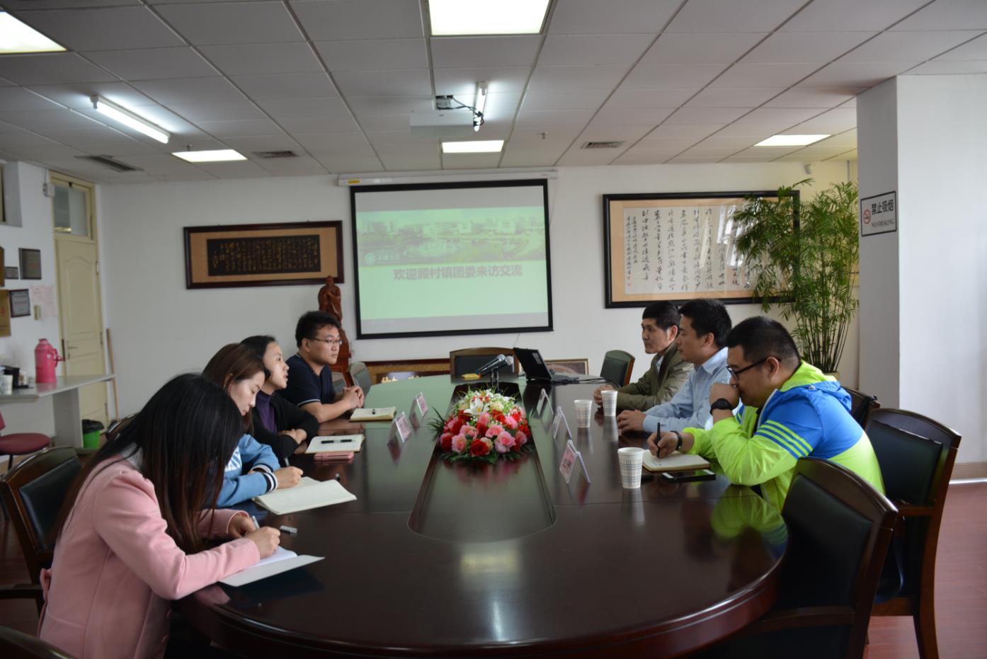 2016年5月20日上午,顾村镇团委书记夏明、馨佳园社区文化活动中心主任沈建鑫、馨佳园社区文化活动中心社工王驰一行来到社会科学学院就2016年暑期爱心暑托班志愿者合作开展交流。社会科学学院团委书记刘锦、团委副书记聂海岭、2014级研究生张廷斐、李琴参加了交流活动。