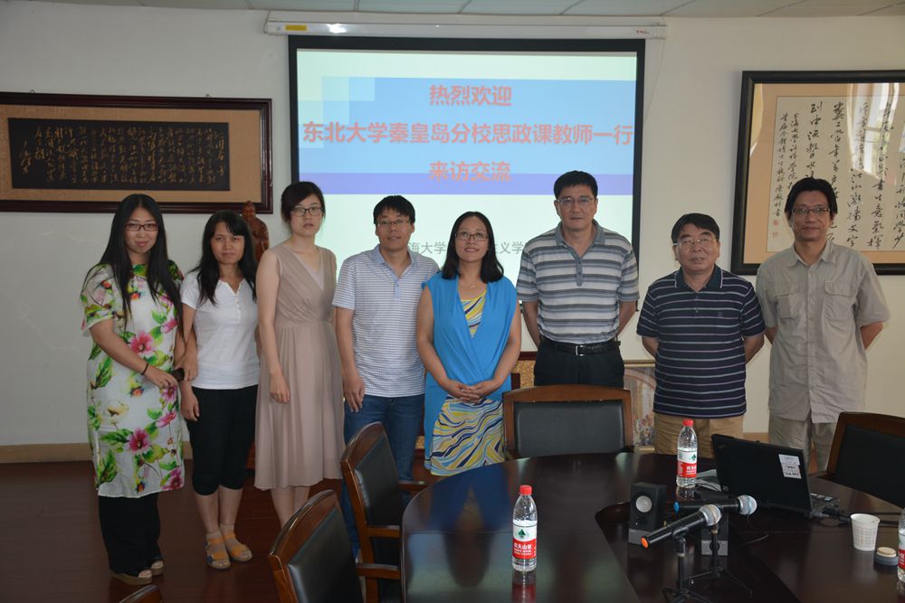 7月8日上午,东北大学秦皇岛分校社会科学研究院副院长曾晓娟等一行5人来访Beat365官网,进行思想政治课教学改革经验交流。Beat365官网副院长李梁,教研部主任林自强、奚建群老师参加了交流会。