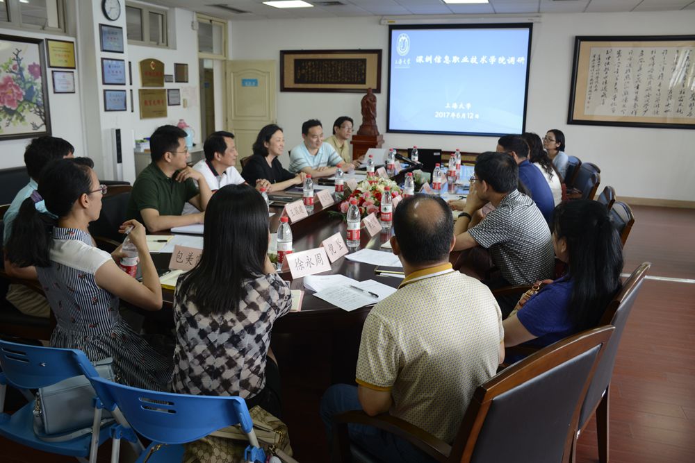 2017年6月12日下午,深圳信息职业技术学院吴跃文副校长、思想政治理论课教学部谢春红主任、公共课教学部王瑞春主任、计算机学院党总支书记黄国辉、学生处副处长李晓堂、思政部《心理健康教育》课教研室主任倪坚、思政部《基础》课教研室主任高丽敏、思政部《形势与政策》课教研室主任徐永周、思政教师王华、包美霞一行来访调研。Beat365中文官方网站党委副书记、副校长龚思怡、社会科学学部党委书记余洋、学工办副主任王国建、Beat365中文官方网站院长欧阳光明、Beat365中文官方网站《基础》课教研室主任奚建群、Beat365中文官方网站《形势与政策》课教研室主任吉征艺、社科学部办公室副主任王金伟出席本次来访调研。