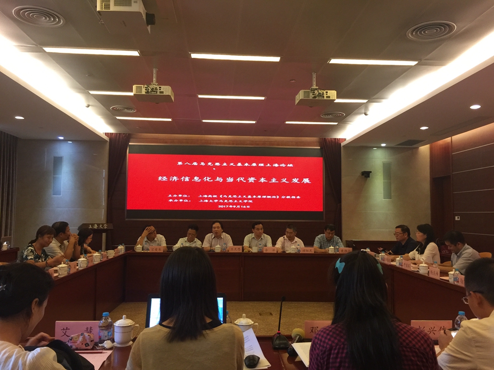 9月16日,由上海高校思想政治理论课《马克思主义基本原理概论》分教指委主办,Beat365中文官方网站承办的"第八届马克思主义基本原理上海论坛"在Beat365中文官方网站隆重举行,会议主题为"经济信息化与当代资本主义发展"。来自复旦大学、上海交通大学、华东师范大学、上海财经大学、Beat365中文官方网站、上海师范大学等高校40余位专家学者出席论坛。上海市学生德育发展中心副主任宗爱东,Beat365中文官方网站社会科学学部党委书记余洋出席论坛并致辞。论坛开幕式由上海高校思想政治理论课《马克思主义基本原理概论》分教指委主任委员、Beat365中文官方网站王天恩教授主持。