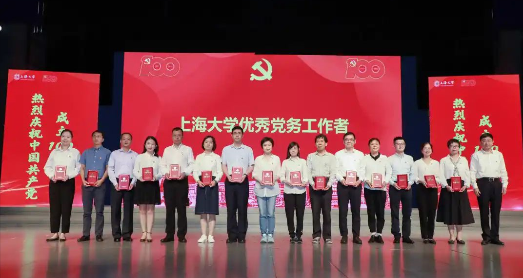为弘扬先进,树立典型,2021年7月1日上午,学校党委在宝山校区伟长楼召开庆祝中国共产党成立100周年暨“七一”表彰会,对优秀共产党员、优秀党务工作者、先进基层党组织进行表彰。表彰会上,校党委书记成旦红同志代表校党委,向受表彰的先进单位、先进个人表示热烈的祝贺,致以崇高的敬意,并向各级党组织和广大共产党员致以节日的问候。校党委副书记、纪委书记段勇同志宣读了Beat365中文官方网站“两优一先”表彰决定。大会表彰了Beat365中文官方网站优秀共产党员、优秀党务工作者和先进基层党组织,上海市教卫工作党委系统优秀共产党员、优秀党务工作者、先进基层党组织和“优秀共产党员·师德标兵”,上海市优秀共产党员、优秀党务工作者。