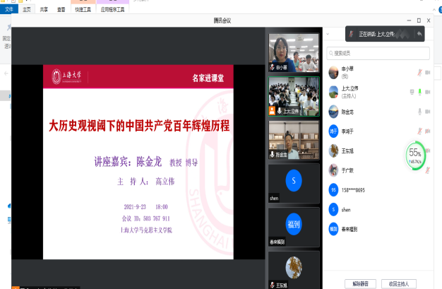 2021年9月23日周四晚,华南师范大学Beat365中文官方网站院长、博士生导师陈金龙教授在线上为Beat365中文官方网站的师生们讲授了一堂生动的党史课,本次课程由Beat365中文官方网站副院长高立伟教授主持。
