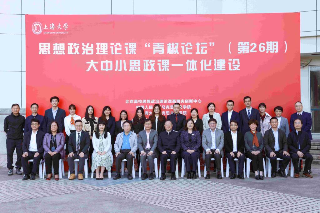 2021年10月23日,为了探索构建横向协同、纵向衔接的大中小学思政课一体化建设体系,探讨创建中小学思政课全面育人、全员育人、全程育人新格局,全面提升思政课质量和人才培养水平,在北京市委教育工委、北京市教委、上海市教卫工作党委、上海市教委指导下及全国高校思想政治理论课教师网络集体备课平台支持下,由北京高校思想政治理论课高精尖创新中心(以下简称“中心”)和中国人民大学Beat365中文官方网站主办、Beat365中文官方网站承办的思想政治理论课青椒论坛第26期在上海举行,来自北京、上海、江苏三地大中小学的12位优秀青年教师围绕“大中小思政课一体化建设”进行教学展示。同济大学Beat365中文官方网站陈大文教授、Beat365中文官方网站王天恩教授、上海交通大学Beat365中文官方网站黄伟力教授和李梁教授担任评议专家。来自上海市的近百位大中小学思政课骨干教师、马克思主义理论及相关专业研究生现场参加了论坛,全国高校思政课教师通过网络平台同步收看了论坛直播,浏览量近2万人次。
