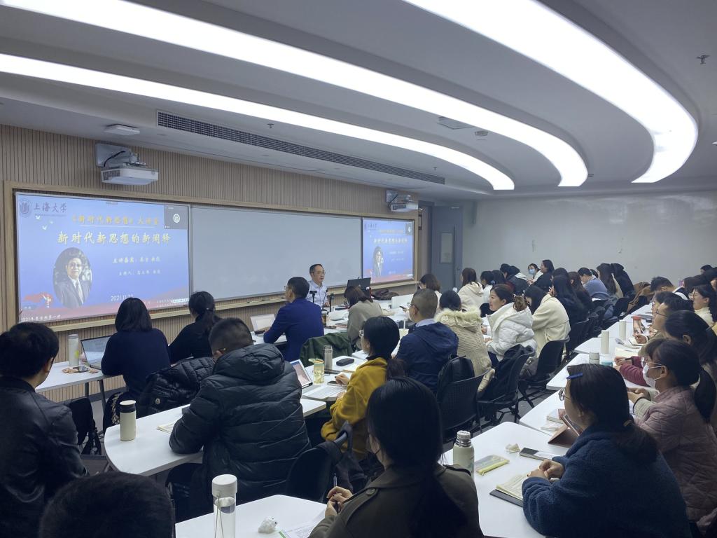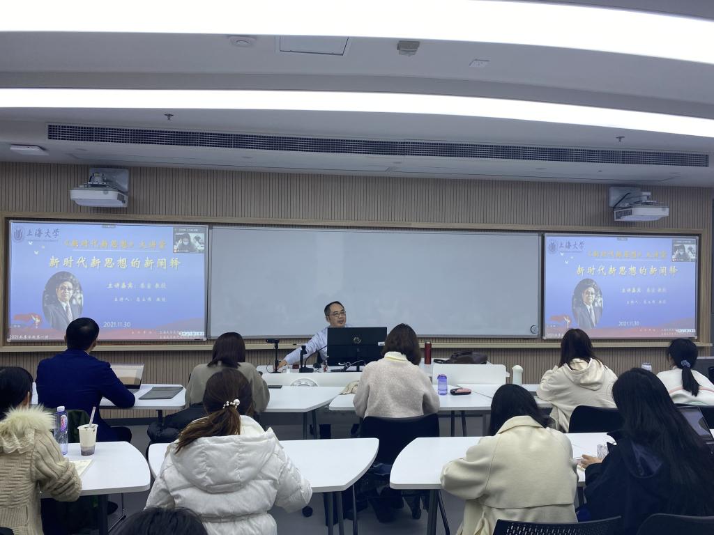 “《决议》从十三个方面,分领域总结新时代党和国家事业取得的历史性成就、发生的历史性变革,重点总结十八大以来的原创性思想、变革性实践、突破性进展、标志性成果,进一步说明习近平新时代中国特色社会主义思想是在实践中产生并接受了实践检验、被实践证明了的科学理论。十三个方面成就中的原创性思想本身就是新思想的重要内容。“ ——中国人民大学秦宣教授做客Beat365中文官方网站《新时代新思想》大讲堂 11月30日晚,Beat365中文官方网站面向硕博研究生和青年教师开设的“习近平新时代中国特色社会主义思想”专题课——《新时代新思想》大讲堂正式开讲。该课程第一讲特别邀请到了中国人民大学教授、博士生导师,中国人民大学习近平新时代中国特色社会主义思想研究院院长、中央马克思主义理论研究和建设工程《毛泽东思想和中国特色社会主义理论体系》课题组首席专家秦宣教授作为主讲嘉宾,为大家带来《新时代新思想的新阐释》的主题讲座。本讲由Beat365中文官方网站副院长高立伟教授主持,采用了“线上+线下同频共振”的新模式,Beat365中文官方网站全体硕博研究生以及其他高校师生学者共200余人共同参与。