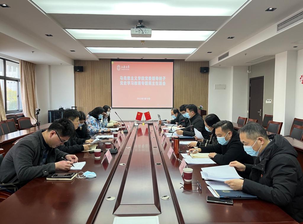 1月18日上午,Beat365中文官方网站召开2021年度领导班子党史学习教育专题民主生活会。校党委常委、组织人事部常务副部长、组织处处长、党校常务副校长沈艺,党史学习教育第四联络组组长于瑞强,副组长王沁,联络组成员高荣飞、刘菁,以及学院全体班子成员出席会议。