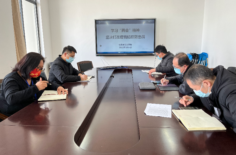 3月6日上午10:15,马院党政领导班子召开“学习‘两会’精神,坚决打赢疫情防控阻击战”的中心组学习会。会议要求:要认真学习“两会精神”,凝聚起守正创新、共克时艰的力量,积极发挥学院党支部的战斗堡垒作用和学院广大教师党员的先锋模范作用。会议强调,学院教职员工不仅要全力配合做好疫情防控工作,更要在疫情防控下做好教育教学各环节工作,做好本学期与新学期教学的有效衔接准备,保质保量完成教育教学各项工作。
