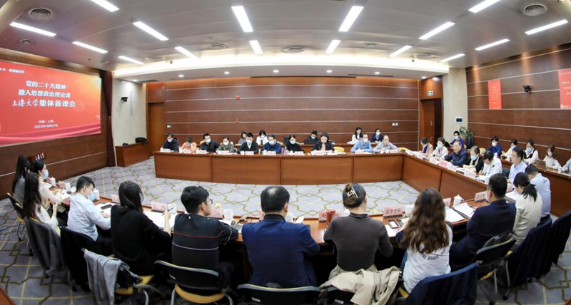 2022年10月27日下午,党的二十大精神融入思想政治理论课Beat365中文官方网站集体备课会在宝山校区成功举行。此次备课会分为两个阶段,第一阶段为线上参与市教卫系统集体备课会;第二阶段与会人员结合我校思政课教学及日常思政教育工作的实际进行集中备课交流和研讨。校党委书记成旦红,副校长聂清,教务部副部长顾晓英,学工办主任、武装部长、本科生书院管理中心主任孟祥栋,研工部部长魏宏,以及思政课教师代表、辅导员代表、“青马研习会”学生理论宣讲团成员代表等参与此次备课会。会议由Beat365中文官方网站党委书记王国建主持。我校Beat365中文官方网站院长闫坤如作为高校Beat365中文官方网站院长代表,应邀线下出席市教卫工作党委、市教委组织的全市党的二十大精神融入学校思想政治理论课集体备课会。