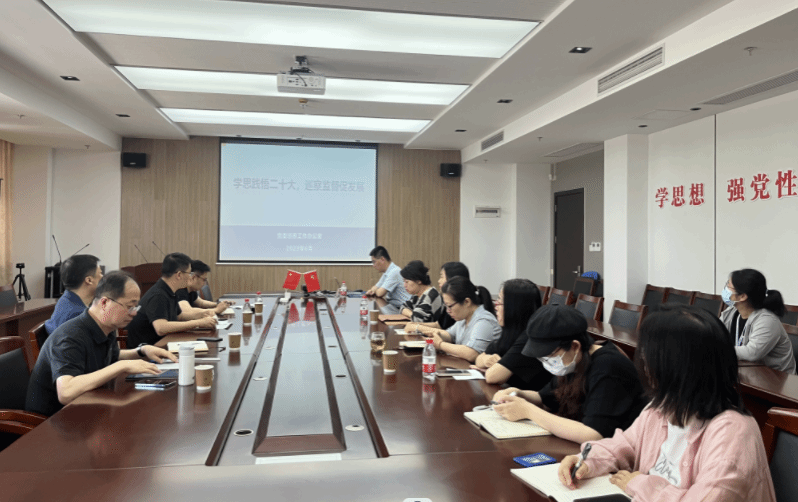 为深入学习贯彻党的二十大精神和习近平总书记关于巡视工作重要论述精神,扎实推进学习贯彻习近平新时代中国特色社会主义思想主题教育深入开展,6月2日上午,Beat365中文官方网站党委开展党委理论学习中心组(扩大)学习会,邀请校党委巡察工作办公室主管高荣飞作“学思践悟二十大,巡察监督促发展”主题宣讲,学院党政领导班子、教工支部书记、行政学工党支部所有党员参加会议。学习会由学院党委书记王国建主持。