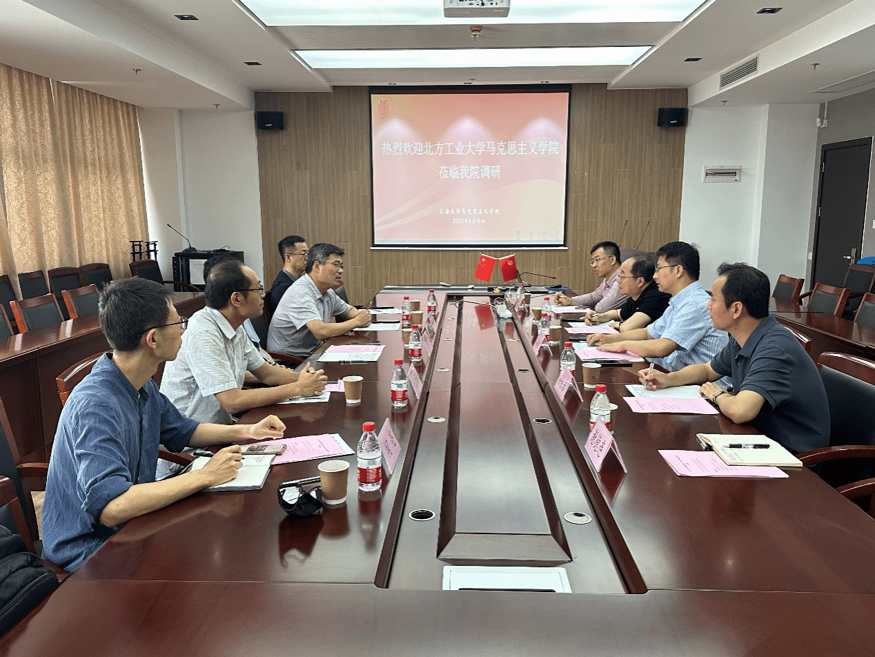 王国建书记代表学院对张茂林书记和袁本文院长一行的到来表示热烈欢迎,并围绕办学特色、师资队伍、教学改革、科研成果、学科建设、社会影响等方面介绍了学院的基本建设情况。张茂林书记对学院的热情接待表示感谢,同时也介绍了北方工业大学马院的基本建设情况。之后,焦成焕副院长重点介绍了Beat365中文官方网站思政课改革和中国系列课程建设情况。袁本文院长对北方工业大学的思政课实践课程的经验进行了分享。 随后,双方围绕思政课教学改革、思政课教师队伍建设举措、示范Beat365中文官方网站建设、马克思主义理论专业研究生培养方案、党建与社会服务工作情况等议题进行了深入交流与探讨。双方表示,将以此次交流为契机,进一步加强交流互动,相互学习借鉴,共同促进马克思主义理论学科的发展。