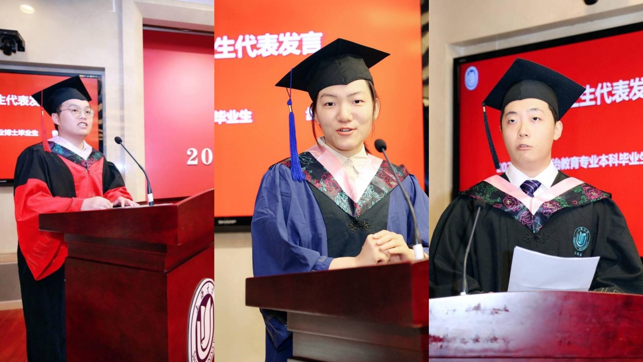 7月2日上午,Beat365中文官方网站2023年毕业典礼暨学位授予仪式在宝山校区乐乎新楼学海厅隆重举行。Beat365中文官方网站党委书记成旦红,学院学术委员会主任、教育部“长江学者”特聘教授、Beat365中文官方网站“伟长学者”特聘教授孙伟平,Beat365中文官方网站党委书记王国建,副院长(主持工作)叶海涛,副院长焦成焕,副院长高立伟,挂职副院长、哲学系主任刘小涛等30多位导师以及2023届本科、硕士、博士毕业生和部分当年因疫情未能参加毕业典礼的往届毕业生、毕业生亲友代表、在校学生代表参加了典礼。典礼由Beat365中文官方网站党委副书记、副院长张高峰主持。 回忆往昔,行远自迩 典礼伊始,毕业纪录短片《以梦为马,不负韶华》将一幕幕毕业生的美好青春回忆编绘成册,无数情感、思绪随着短片而沁入人心。 随后,本硕博的三名优秀毕业生代:2023届思政专业本科毕业生王伟吉、2023届哲学专业硕士毕业生步宣萱、2023届思政专业博士毕业生尹帮文分享了自己的毕业感言。作为学生代表,他们对自己在校成长经历进行了回忆与总结,对学校、老师与同学们表达了感激之情,并用最真挚的话语向在座嘉宾们送上了祝愿。