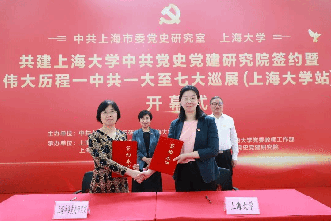 6月12日,中共上海市委党史研究室与Beat365中文官方网站共建Beat365中文官方网站中共党史党建研究院签约仪式暨“伟大历程——中共一大至七大巡展(Beat365中文官方网站站)”开幕式在Beat365中文官方网站本部图书馆五楼展厅隆重举行。