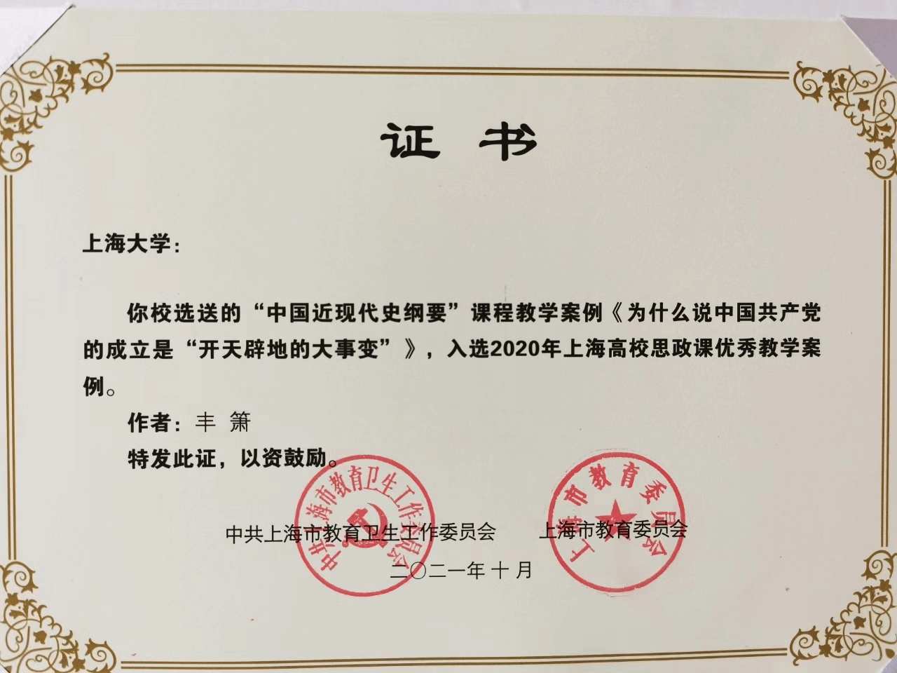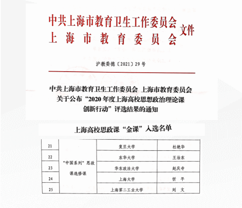 二、课程建设成效 五年来,中国近现代史纲要教学团队成员将自己的专业与课程教研紧密结合,教学团队取得了丰硕的教研成果。团队成员作为骨干成员曾获国家级教学成果二等奖1项,上海市教学成果奖一等奖1项,上海市教学成果奖二等奖1项,首届高校思想政治理论课教学展示特等奖1项,1门课程入选上海高校思政课“金课”,1个项目入选2020年度“上海高校思政理论课创新行动”,1门课程入选上海高校党史学习教育与课程相融合示范课程。多人次在上海市各类教学竞赛中获奖。 团队成员积极参与创建高层次教学研究平台,承担了上海市中共党史学会渔阳里研究专委会、高校伟大建党精神研究中心Beat365中文官方网站分中心、Beat365中文官方网站中共党史党建研究院等重点平台的教学科研工作。
