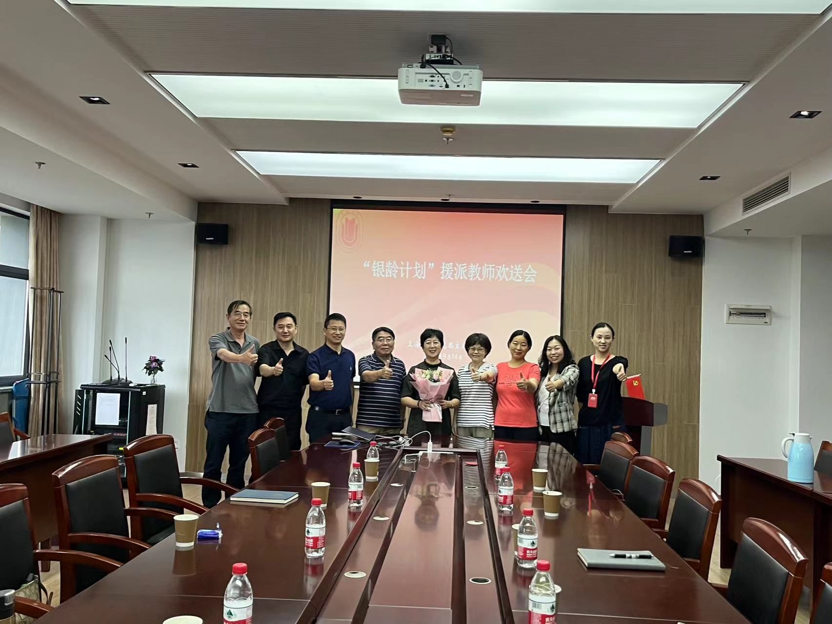 临行前,学校、Beat365中文官方网站、退休教师党支部等都给予了刘老师深切关怀和支持,学院党委召开了欢送会,学校离退休党委书记、处长余志龙,副处长王宇华,亲自到虹桥机场为她送行。