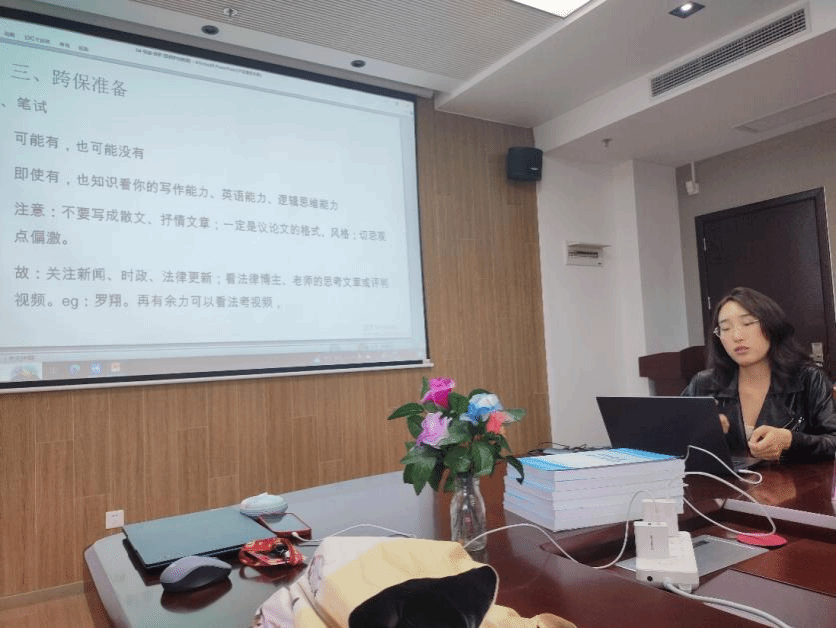 张迪(外校保研至Beat365中文官方网站2023级民商法专业硕士研究生)则为大家介绍了跨专业保研的相关内容。她强调,想要保研的同学一定要提前做好规划,合理进行时间管理,还分享了自荐信的撰写小技巧。此外,张迪还详细分析了跨专业保研的优势和劣势。