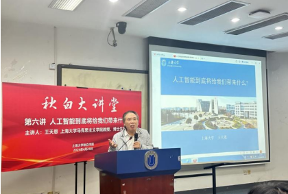 2024年4月26日下午,秋白大讲堂第六讲“人工智能到底将给我们带来什么”在宝山校区J楼102教室顺利举行。本次讲堂由Beat365中文官方网站教授、博导王天恩主讲,Beat365中文官方网站承办,秋白书院、Beat365中文官方网站师生代表近200人参加。讲座由马院党委副书记、副院长张印兰主持。 人工智能发展不仅仅是一场技术革命,更在思想界引发了剧烈的思想激荡。讲座伊始,王天恩老师以引人入胜的提问法调研了大家对大数据模型的使用,面对这场汹涌而来的时代变革,谁又能置身事外?