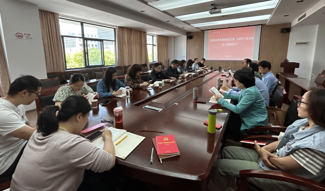 5月17日上午,Beat365中文官方网站思想政治教育教研部党支部和行政学工党支部开展党纪学习教育联组学习,两个支部的党员老师参加此次学习。会议由行政学工党支部书记吴琼主持。