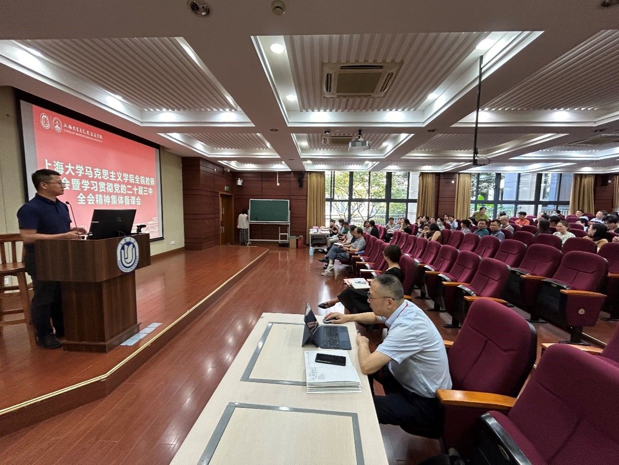 会议主要分为两大部分。王国建首先向学院全体教职工传达了Beat365中文官方网站第四届党代会会议精神和2024年秋季学校中层正职干部培训会精神,强调全体教职工要积极推动学院整体工作创新向好、稳步提高,围绕第四次党代会确立的“建设中国特色、世界一流大学”的目标奋进。副书记张高峰、张印兰,副院长焦成焕、高立伟,挂职副院长刘小涛等分别围绕“教师思政和师德师风”“学生就业与培养”“思政课程建设”“研究生培养与学科建设”“国际交流及哲学系工作”等交流了学院下半年重点工作。 在集体备课会环节,学院分别邀请到上海市马克思主义研究会秘书长、上海市学习贯彻党的二十大精神专家宣讲团成员、上海市委党校汤荣光教授和兰州大学Beat365中文官方网站二级教授、兰州大学中共党史党建研究院院长、中央马克思主义理论研究和建设工程首席专家刘先春教授做主旨报告。