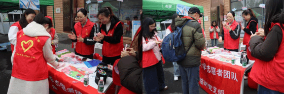三、志愿韶华,“樱”姿绽放 为充分发挥党员先锋模范作用,临时党支部要求全体党员志愿者佩戴党员徽章上岗,勇于亮身份、担责任,将先锋本色彰显在每一个细微之处。无论是搀扶老人穿越花海,还是紧急处理儿童走失事件,他们用实际行动诠释“为人民服务”的深刻内涵。负责水上游玩项目救生衣检查的党员志愿者陈杰垚表示:“作为新时代的党员同志,我愈发懂得‘为人民服务’从来不是抽象概念。在帮助游客整理救生衣的躬身之间,在耐心解答咨询的言语之中,我们正用青春践行着党旗下的誓言。这片樱花海见证的不仅是春的绚烂,更是红色基因的传承。”