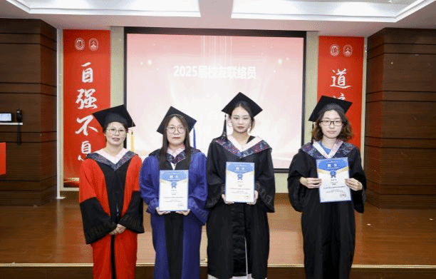 学院党委副书记、副院长张印兰为2025届校友联络员王亚蕾、冯清秋、吉冬慧颁发聘书。 四、拨穗加冕,使命在肩