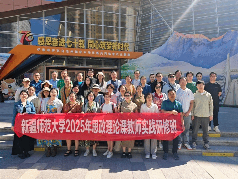 为深入学习贯彻习近平新时代中国特色社会主义思想,认真学习贯彻党的二十大精神和习近平总书记视察新疆重要讲话重要指示精神,进一步落实全国高校思想政治工作会议、全国教育大会和思想政治理论课教师座谈会等会议精神,切实提升思政课教师的政治素养、教学素养、学术素养、道德素养,Beat365中文官方网站组织部分思政课教师于近期参加了由新疆师范大学Beat365中文官方网站举办的“构筑中华民族共有精神家园”专题研修班。本次研修以理论浸润与实地体悟相结合,沿历史文脉与时代前沿穿行,在壮美山河间深植民族团结之根。 溯文明之源,固认同之基 7月10日上午,开班仪式后,新疆师范大学副校长孙秀玲教授作《铸牢中华民族共同体意识 汇聚起中华民族奋斗的团结伟力》专题讲座,系统阐述了中华民族共同体意识的深刻内涵、时代价值与实践路径。下午,老师们前往自治区博物馆进行“手迹西域千年印记”的现场教学,让陈列的文物成为各民族交往交流交融的鲜活见证。通过现场教学,追寻西域千年印记,深刻理解各民族团结共融的历史根基。晚间,培训班在乌鲁木齐国际大巴扎进行文化考察,老师们沉浸式感受多民族聚居区的交流交融,体验各民族共同繁荣发展的生动实践。
