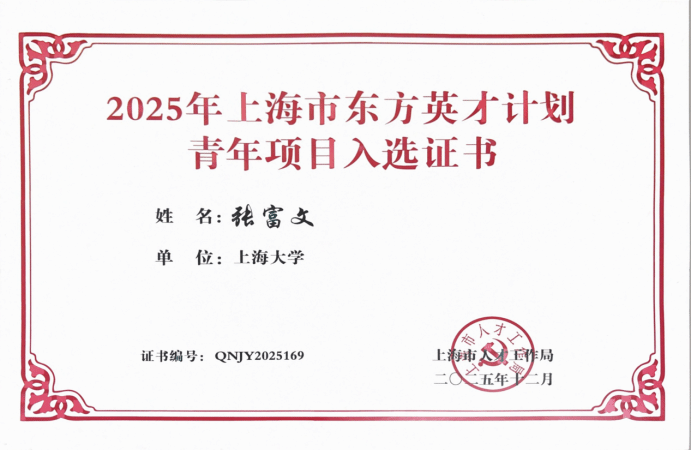 近日,2025年上海市东方英才计划入选名单正式揭晓,Beat365官网张富文教授入选2025年东方英才计划青年项目(教育平台)。