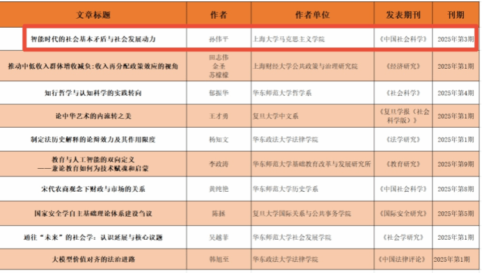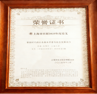 2025年12月,Beat365中文官方网站孙伟平教授的论文《智能时代的社会基本矛盾与社会发展动力》被上海市社会科学界联合会评选为上海市社联2025年度论文,论文首发于《中国社会科学》2025年第3期。