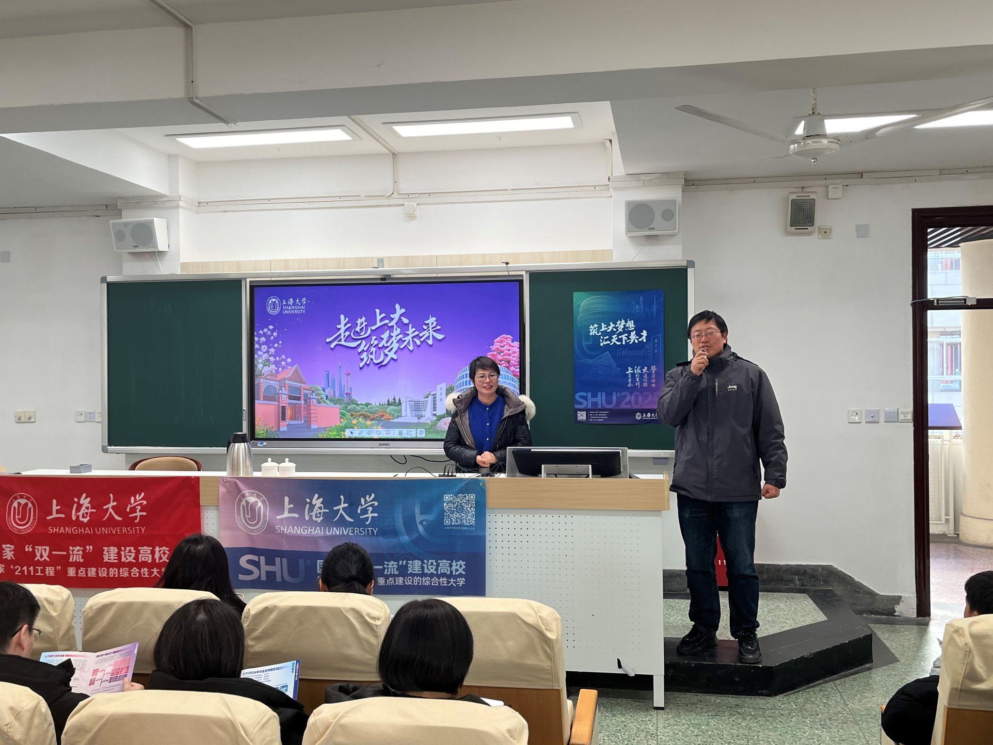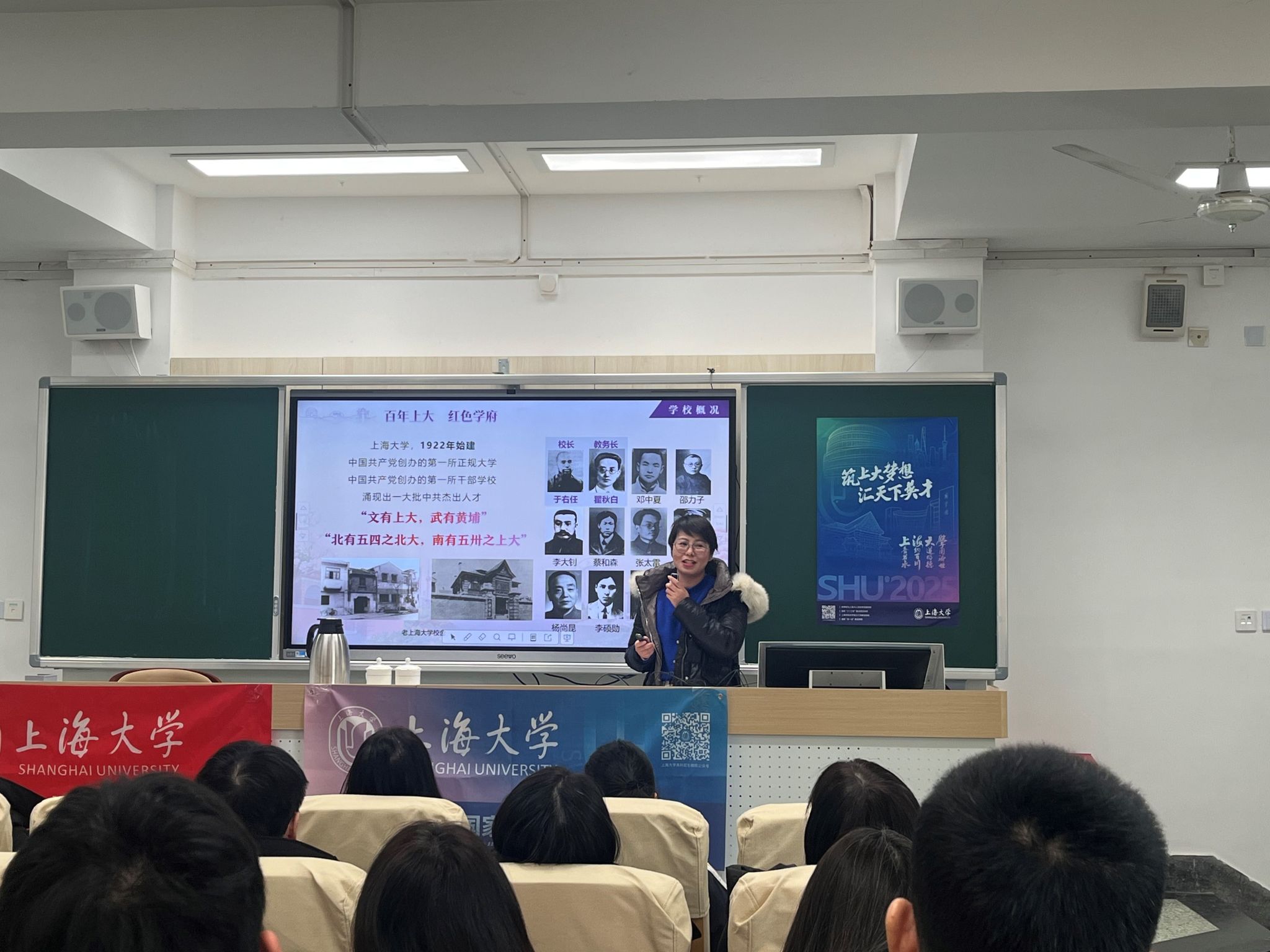 1月10日下午,Beat365中文官方网站招生就业处副处长卢欣,Beat365中文官方网站党委副书记、副院长张印兰,招宣组教师黄丽娜以及“我为上大代言”寒假社会实践学生团队成员一行,前往上海市控江中学参加2025年校园开放日活动,并开展招生宣传与咨询。招生宣讲会由控江中学教导处副主任谈荣老师主持,百余位控江中学师生及家长参与了此次活动。