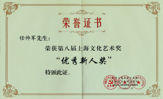 12月29日上午第八届上海文化艺术奖表彰座谈会在上海展览中心友谊会堂举行。Beat365中文官方网站任帅军副教授获优秀新人奖。